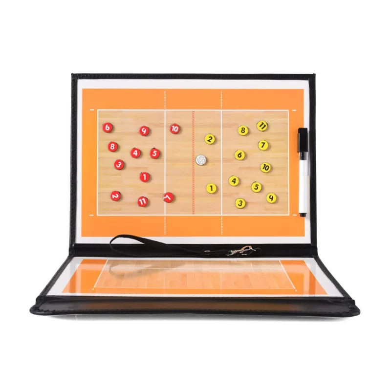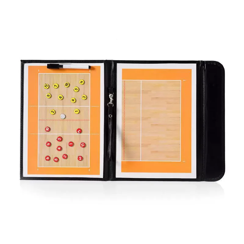 La caratteristica più importante di questa tavola tattica da pallavolo di qualità Jinlangte Sports è la sua rappresentazione completa del layout standard del campo da pallavolo. Tutto, dalle posizioni in prima e ultima fila alla ricezione, al servizio e alla copertura difensiva, è chiaramente visualizzato sul tabellone. Gli allenatori possono utilizzare un pennarello per tracciare percorsi tattici o utilizzare pezzi magnetici per illustrare i movimenti e le rotazioni dei giocatori, rendendo intuitiva la coordinazione complessa.
